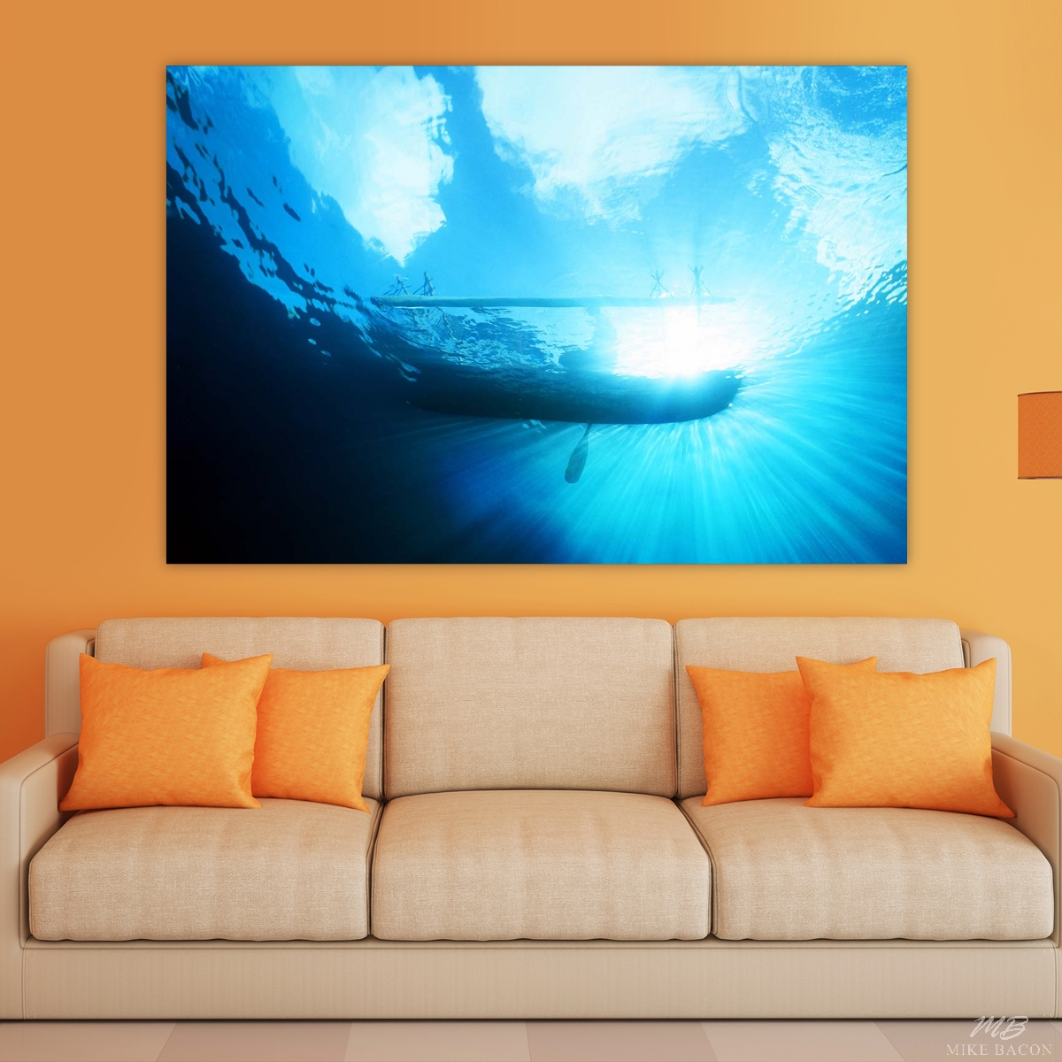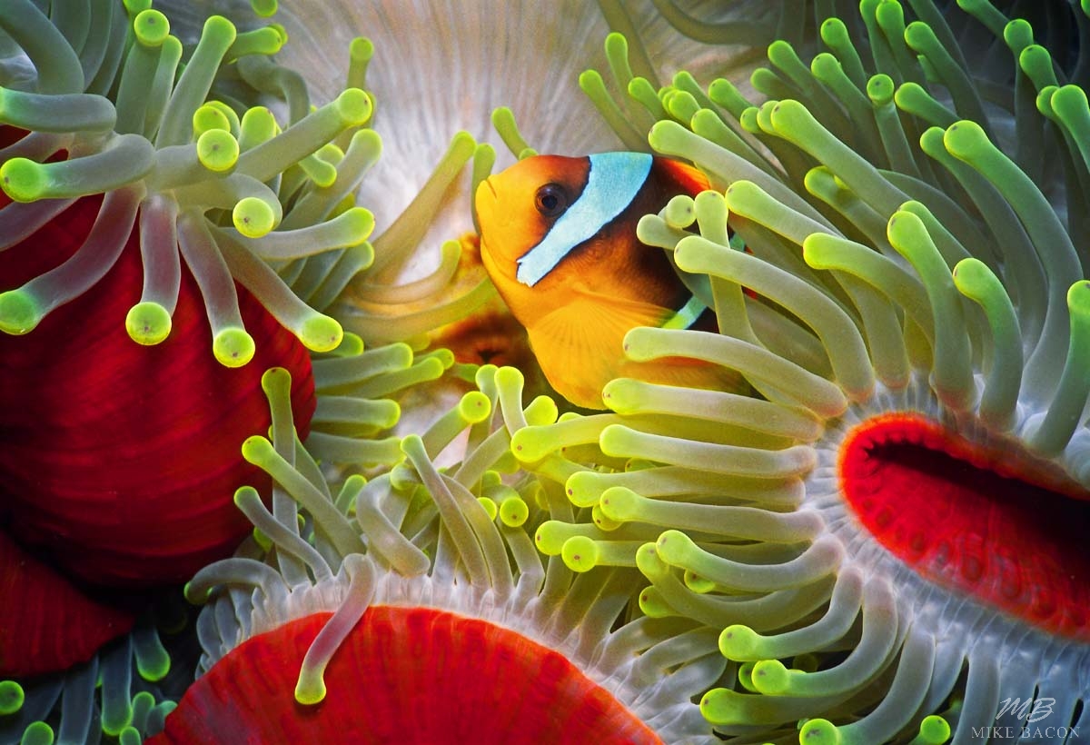 This beautiful image of an adult female Orangefin Anemonefish was photographed on the north side of Big Brothers Island in the Red Sea. Big Brothers Island is a desolate sea mount hundreds of miles offshore of Egypt where up welling currents sweep up from thousands of feet of water and over the top of this sea mount. These up welling currents bring up incredibly clear nutrient rich water and the whole top edge of the seamount is covered with immense, brilliant red, gigantic anemones. Add to this beauty, hundreds, if not thousands of Orangefin Anemonefish all swimming and dancing through the currents and swaying tentacles of the anemones. What a "WOW" factor to behold! In very short order, you will find yourself mesmerized by the array of vibrant colors and by the myriad schools of fish in every color of the rainbow, all swimming around you. If you learn to dive here, you have started with "desert" first and thoughts of going home will never enter your mind. I love absolutely everything about this image! The contrast of colors between the brilliant yellow tentacles and the vibrant reds of the pedal disc of this anemone is stunning and that single tentacle in the foreground adds an exclamation point the the composition. This photo looks spectacular on our wall and it will on yours too! If you are looking for a photo that is not only beautiful, but will stand out and make a statement, then this image of a "Lady in Red" is a great choice! I love it!