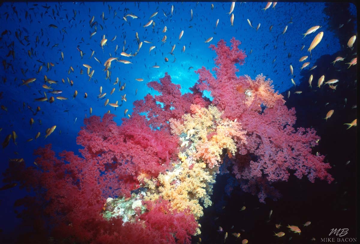 This beautiful photo of the vibrantly colored soft corals and brilliant orange schooling fairy basslets is a great addition to any room! It will lighten up the room and add an air of peace and tranquility at the same time. I took this photo on the north side of an offshore seamount in the Red Sea. This seamount, rising thousands of feet straight up from the bottom, is found hundreds of miles offshore of Egypt. It almost breaks the surface and is known for its incredible abundance of life. There is such competition for living space here that almost every nook and cranny has something living within it or on it. The beautiful blue water with its incredible clarity, and the pastel colors of the reef make this image a great addition to any home!