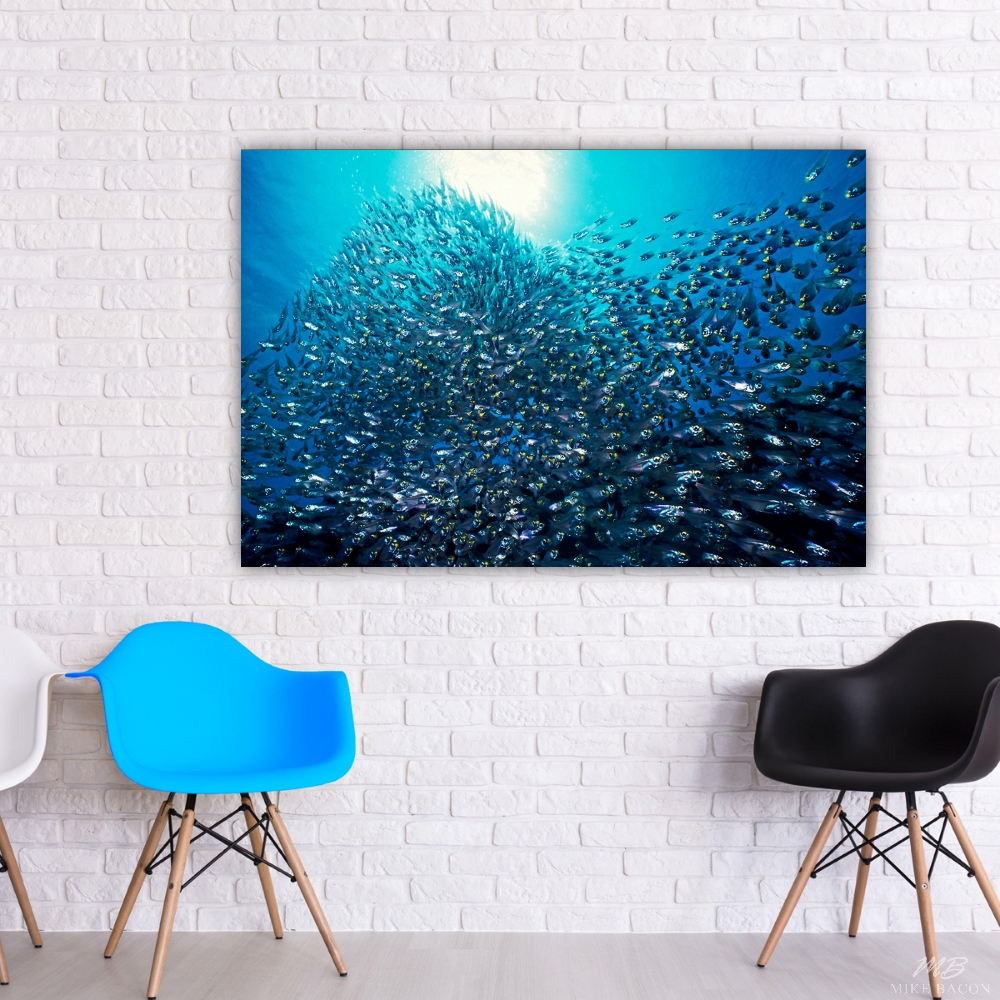 Many times, while diving the cracks and crevasses of the reef, I have been surrounded by literally hundreds of thousands, if not millions of Glassy Sweepers darting to and fro among the reef. The schools can be so large and dense that you can be lost in total darkness as the size and quantity of the schooling fish blocks out the sunlight filtering through the water. Glassy Sweepers get their name by their clear color and how the specialized frills on their scales vibrate in the water when they twist and turn, making a sound like the sweeping motion of a whisk broom. Watching the swirling river of fish and listening to the sound as they dance about you is almost hypnotic, and nothing short of amazing! Tiny specks of gold passing before your eyes by the millions, all back lit from the sun, like gold dust drifting in the currents. I love it!