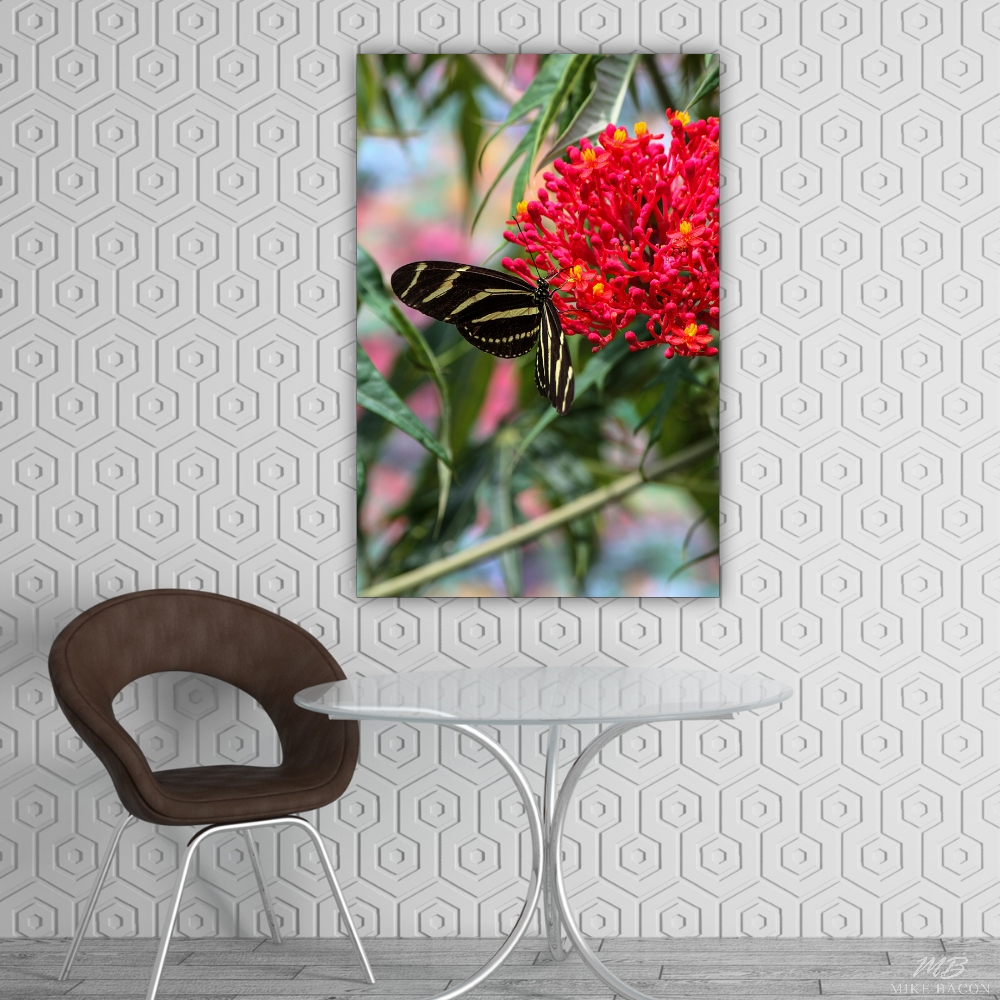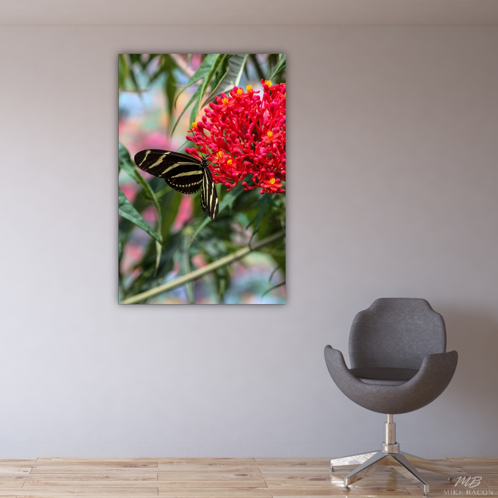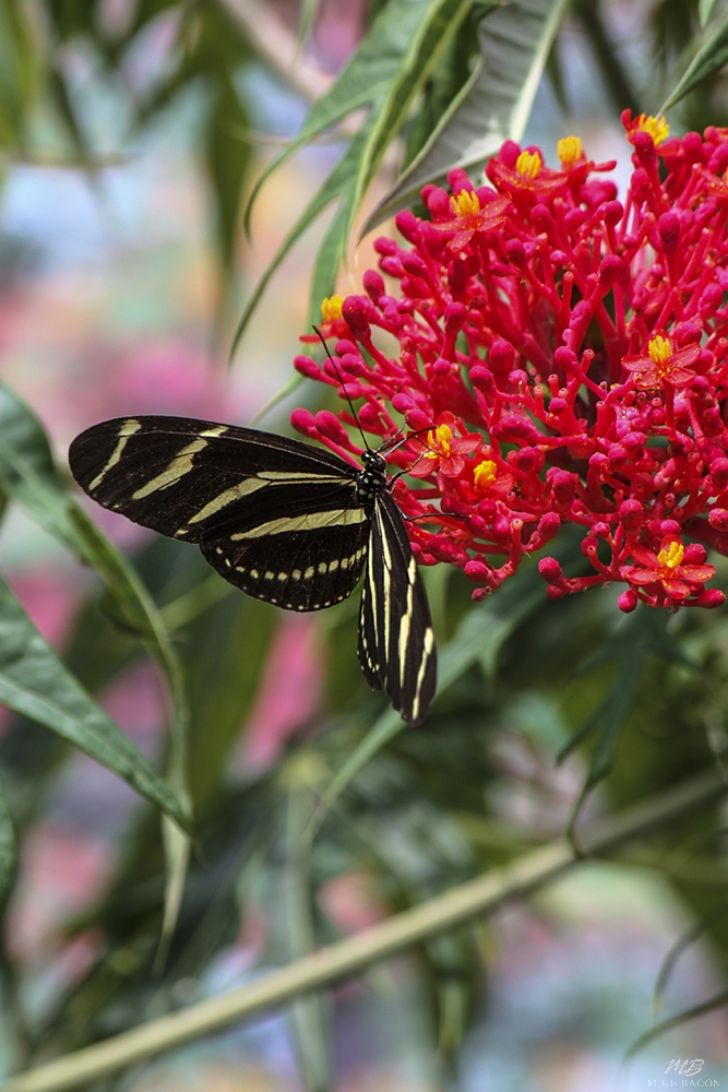 The zebra longwing butterfly is the official state butterfly of Florida. It is also my favorite species of butterfly to see flitting about the yard. This photo was taken in our backyard while the butterfly was drinking nectar out of the coral plant flower. I love the reds, greens, pinks and blues of the background as well. If you want to get some butterflies visiting in your yard, plant coral plants, milkweed, scarlet firebush and some buddleia. There are many other plants that work, but these work best in our yard. Plant some native wild passion vines or corky stemmed passion vines in a shady area for the larval stages of zebra longwings or julia butterfly caterpillars. They work awesome for us!